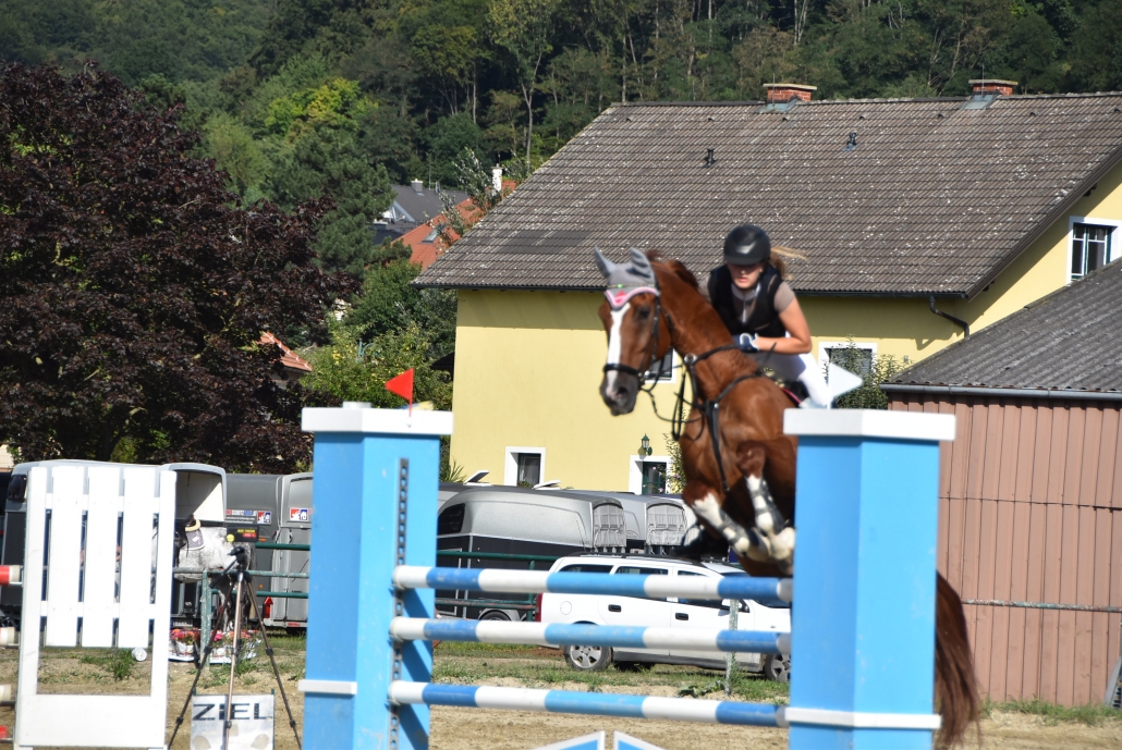 Im Stechen standen dann insgesamt 5 Paare, allesamt erfahrene Reiterinnen: Victoria Zowa, Kerstin Engel, Michelle Schuster und Sarah Laetitia Erdelyi mit 2 Pferden. Letzte hatte auch die Aufgabe das Stechen im Sattel von Quartz van de Nieuwmolen, einem belgischen WB Wallach, zu eröffnen: 4 Fehlerpunkte, sollte diesem Paar am Ende des Tages Rang 3 bescheren. Als nächstes starteten Victoria Zowa und Calica. Ebenfalls mit 4 Fehlerpunkten, aber der besseren Umlaufzeit übernahm dieses Paar die Führung. Alles sah nach einem Sieg für Victoria Zowa aus, als sowohl Kerstin Engel, als auch Michelle Schuster jeweils 8 Fehlerpunkte kassierten. Dann kam Sarah Laetitia Erdelyi mit ihrem 2. Pferd. Happy Mood, ebenfalls ein belgisches WB, machte seinem Namen alle Ehre und trug seine Reiterin in der einzigen fehlerfreien Runde dieses Stechens ins Ziel.