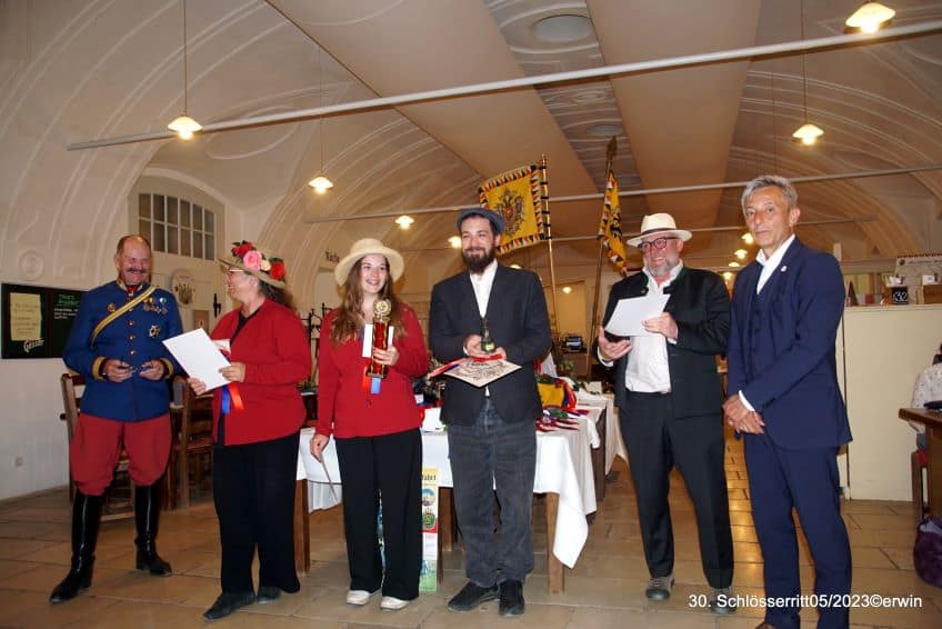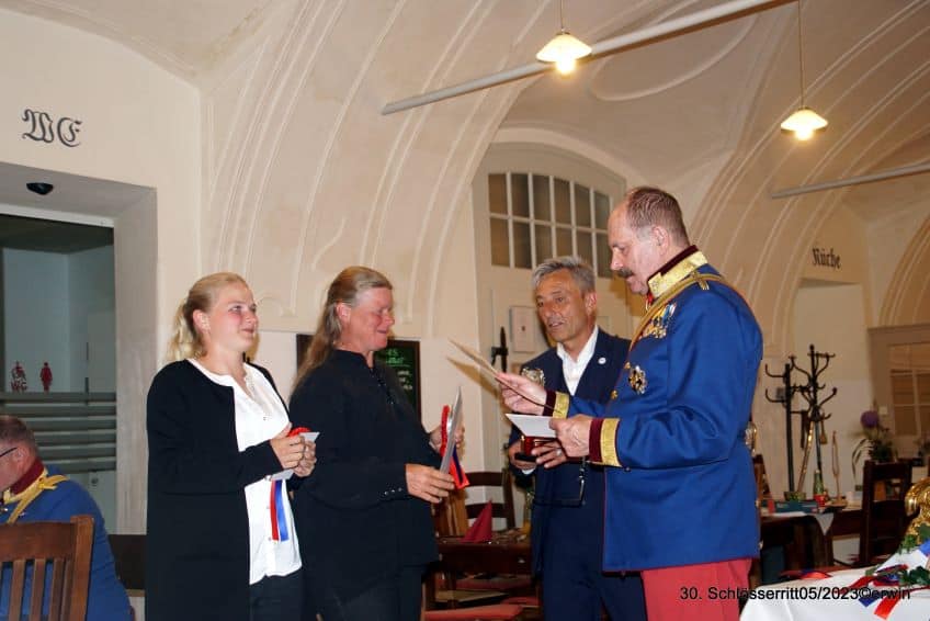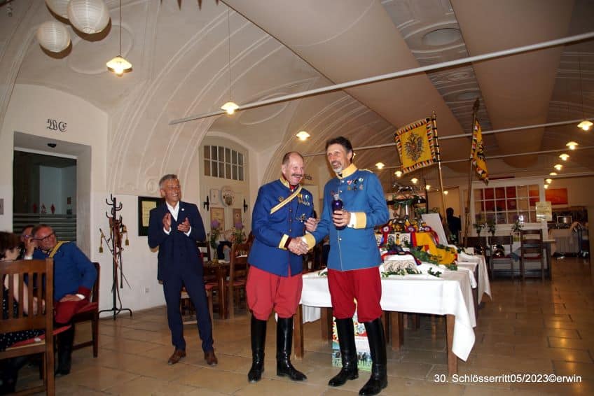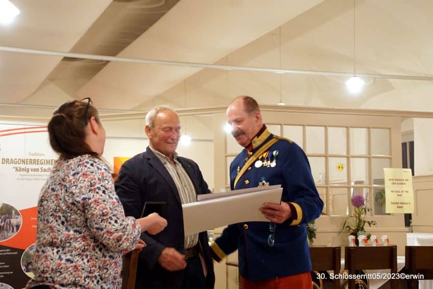 Leider waren auch heuer seitens des Österr. Kavallerieverbandes keine weiteren Kavalleristen vertreten. Beim 31. Schlösserritt vom 30.5.-02.06.24 würden wir uns zusätzlich zu den starken zivilen Reitergruppen auch auf die Mitglieder der Österr. Kavallerieverbandes zu Pferd freuen! Nochmals ganz herzlichen Dank für die Unterstützung an den NÖ Pferdesportverband durch Präsidentin Mag. Petra Choc und KR Ing. Gerold Dautzenberg sowie an die Firma „Die Werbegestalten“ der Familie Geiger.