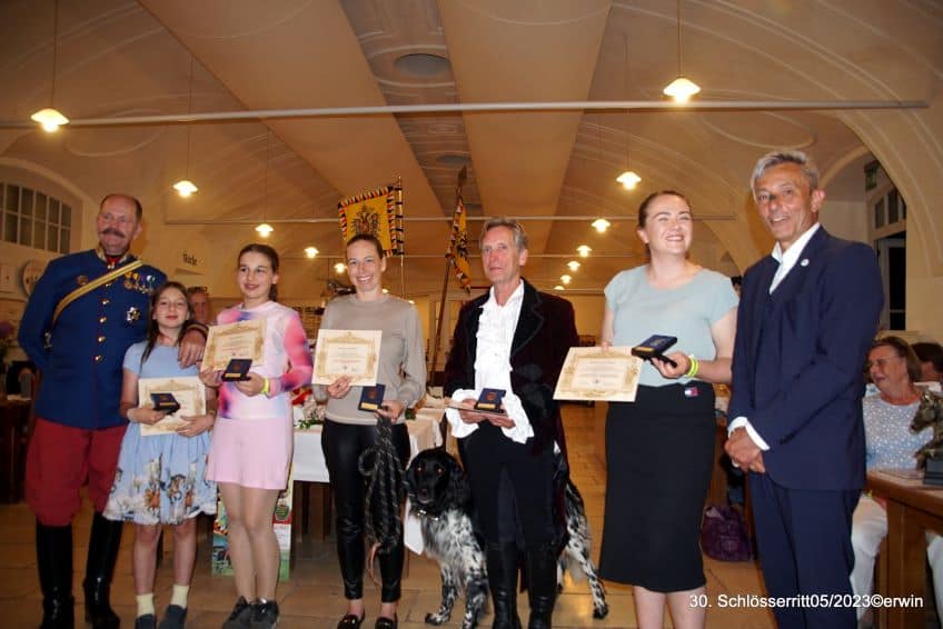 Vor der Siegerehrung wurde KR Gerold Dautzenberg, Präsident den NOEPS a. D., für die Unterstützung und Förderung des Marchfelder Schlösserritts das Goldene Ehrenzeichen mit grünem Lorbeerkranz überreicht. 12 Teilnehmer (Bewerb A) hatten bei den Sonderprüfungen positiv abgeschnitten und die Gesamtstrecke von ca. 80 km fehlerlos absolviert. Davon konnten 4 Teilnehmer mit Stolz das Kav.-Leistungsabzeichen für Orientierungs- und Wanderreiten in Bronze entgegen nehmen.