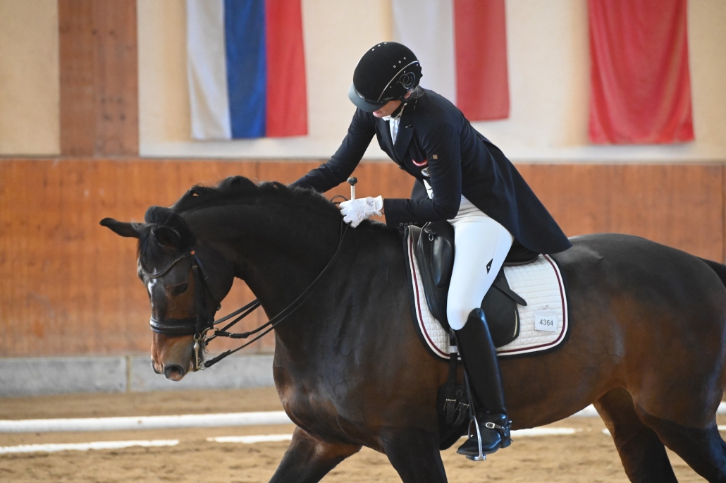 Am ersten Turniertag noch auf Rang drei platziert, mauserte sich Silvio G unter der Tschechin Vanda Belinova in der Dressurpferdeprüfung für fünf- bis sechsjährige Pferde am Sonntag zum Tagessieger. Er glänzte insbesondere im Schritt mit einer Teilwertnote von 8,00 und erhielt insgesamt 7,68. Kerstin Kronaus war mit zwei Pferden aus dem Burgenland angereist und platzierte sich mit Spencer B (7,66) und Second Surprise K (7,54) auf den Rängen zwei und drei. In der Abteilung für vierjährige Pferde war zwar nur ein Pferd am Start, das sorgte allerdings mit sehr guten Teilnoten für Aufsehen. Der von Verena Stolfa vorgestellte österreichische Wallach De Sensation MFG erhielt die Wertnote 8,00 im Trab sowie 8,30 im Galopp. Auch in der DP-L war nur ein Hengst am Start, der von Peter Gmoser vorgestellte Don Jon. Und auch er wusste mit einer Gesamtwertnote von 8,20 sehr zu überzeugen. Der in Oldenburg gezogene Fuchs erhielt in sämtlichen Teilbereichen eine Wertnote von über 8,0, die beste Benotung mit 8,50 für seinen Galopp.