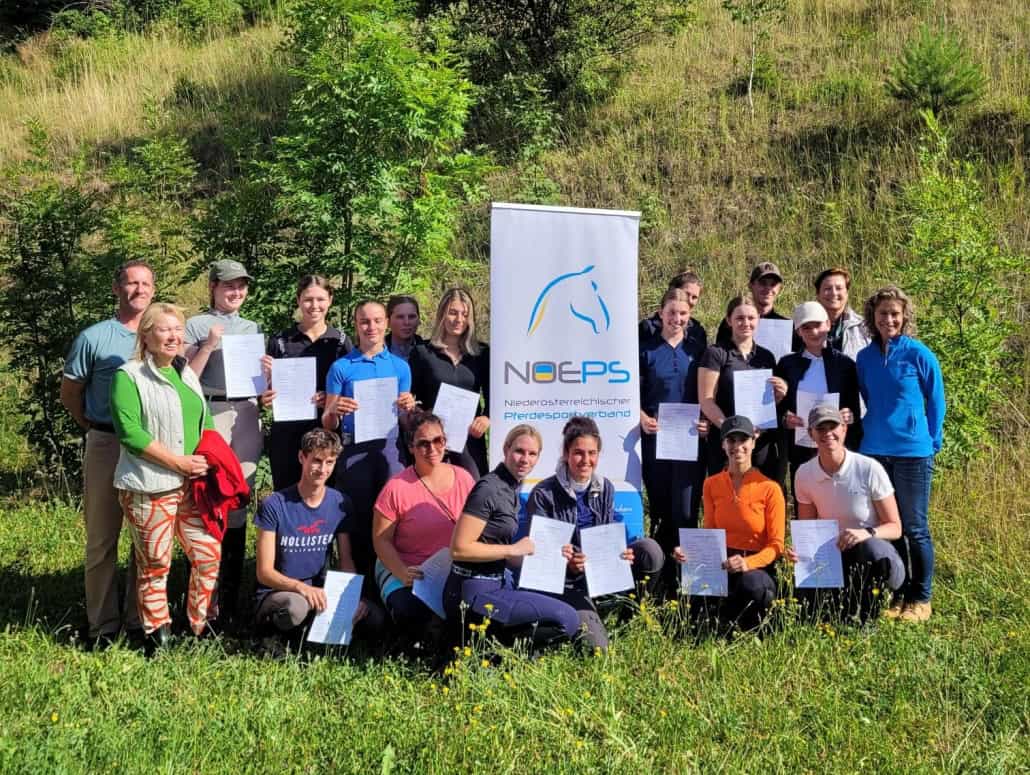 „Eine reiterlich überdurchschnittliche Truppe mit bemerkenswerten Fortschritten im Kursverlauf. Der gegenseitige Respekt und die Hilfsbereitschaft waren für den positiven Kursverlauf sehr förderlich. Es zeigt sich wie wichtig Offenheit und Lernwilligkeit für den individuellen Fortschritt sind. Im Ergebnis gab es dann viele einzelne ausgezeichnete Leistungen und zwei besonders hervorstechende Auftritte von Shirin La Garde und Maud Sellem mit durchgehend ausgezeichnet in allen praktischen Teilprüfungen“, zeigte sich Ausbildungsleiter Lukas Ornauer sehr zufrieden mit dem Niveau der Kursteilnehmer. „Ich gratuliere allen herzlichst und bedanke mich bei den Prüferinnen für die angenehme Abwicklung!“