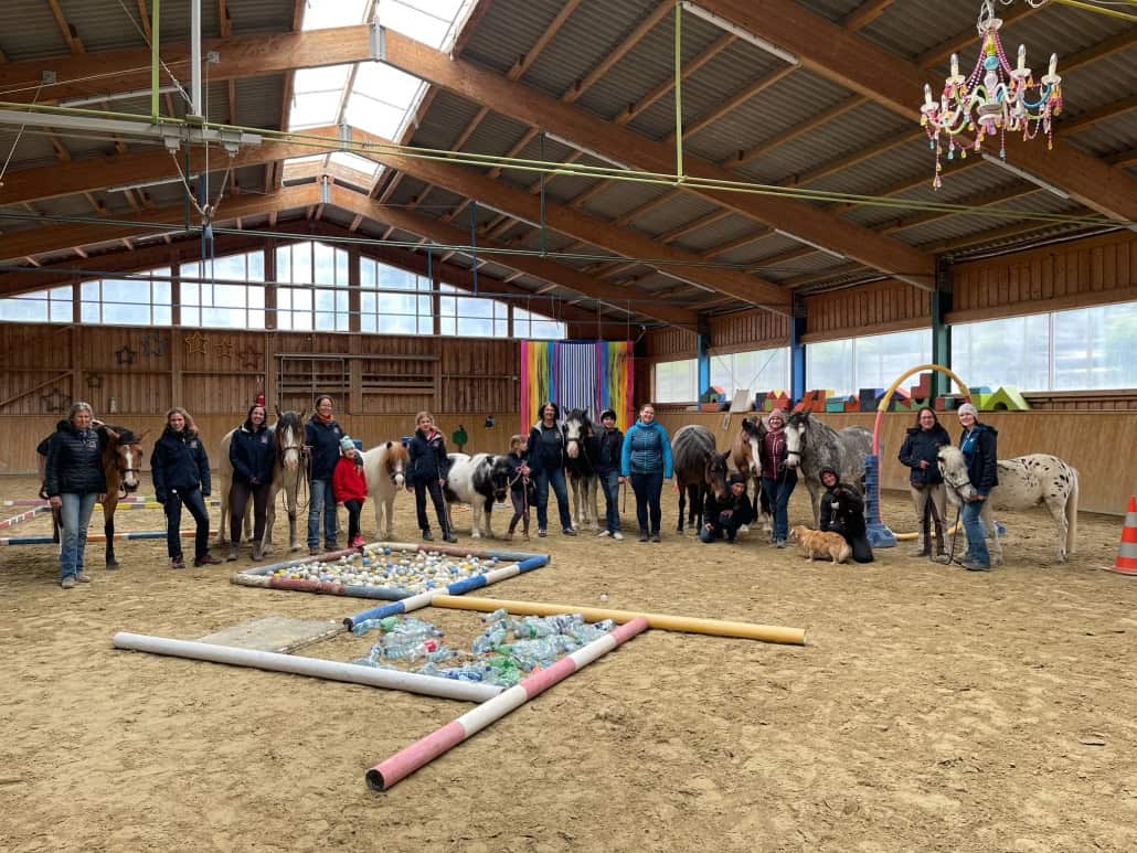 Wir waren sehr beeindruckt über die Feinfühligkeit, die Fairness und Ruhe, die sie im Umgang mit ihren Pferden an den Tag legten. Die Pferde blieben bei allen ihnen gestellten Aufgaben und auch neuen Hindernissen, sowohl vom Boden, wie auch vom Sattel aus, vollkommen entspannt durch die Ruhe und Gelassenheit ihrer vertrauten Menschen. Wir freuten uns besonders, dass auch vier Jugendliche im Alter zwischen 6 und 13 Jahren mitmachten und zeigten, wie wichtig auch ihnen ein harmonischer und entspannter Umgang mit ihren Pferden ist. Besonders beeindruckend war, dass fast alle Teilnehmer die unterschiedlichen Aufgaben auch in Freiarbeit absolvieren konnten – auch mehrere Mensch-Pferd-Teams gleichzeitig.
