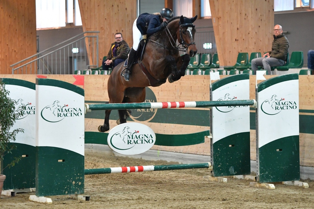 Einen hochspannenden Showdown erlebte das Publikum beim ersten RACINO Grand Prix der Winter Tour, die von 15. bis 24. Februar im Magna Racino über die Bühne geht. Insgesamt neun Starterpaare konnten den von Andreas Bamberger und Lina Stanzel gestellten Grundparcours, der eine stattliche Hindernishöhe von 1,40 Meter aufwies, fehlerfrei absolvieren und das erhoffte Ticket für das Stechen lösen. Dort kam es zum dramatischen Schlagabtausch und der Ausgang des Rennens hätte sich nicht spannender gestalten können. Gleich zu Beginn legte Gerfried Puck mit Bingo du Parc die Latte sprichwörtlich hoch und lieferte in 36,54 Sekunden eine starke Ansage ab. Daran hatten seine Kontrahenten ordentlich zu beißen und mussten sich allesamt hinten anstellen. Bis als vorletzte Teilnehmerin Katharina Rhomberg die Bahn betrat. Sie sattelte Careless, die ja schon im freitägigen Hauptspringen siegreich gewesen war und im gestrigen S*-Springen auf dem dritten Rang strahlte. Im Stechen verfolgte das Duo nur ein Ziel: Tempo machen und Bestzeit aufstellen. Gesagt, getan! Fehlerfreie 35,95 Sekunden bedeuteten die Führung. Nun hieß es noch einmal zittern, denn Matthias Raisch hatte mit Coleur Blue noch ein heißes Eisen im Feuer. Der Oberösterreicher hatte einen beachtlichen Lauf und qualifizierte alle drei an den Start gebrachten Pferde für das Stechen. Er hatte also noch einmal riskiert und war am Weg zum Schlussoxer Kopf-an-Kopf auf Siegeskurs. Erst beim Blick auf die Anzeigetafel verriet die Uhr: Strafpunktfreie 35,96 Sekunden bedeuteten eine Hundertstel Rückstand und Platz drei.