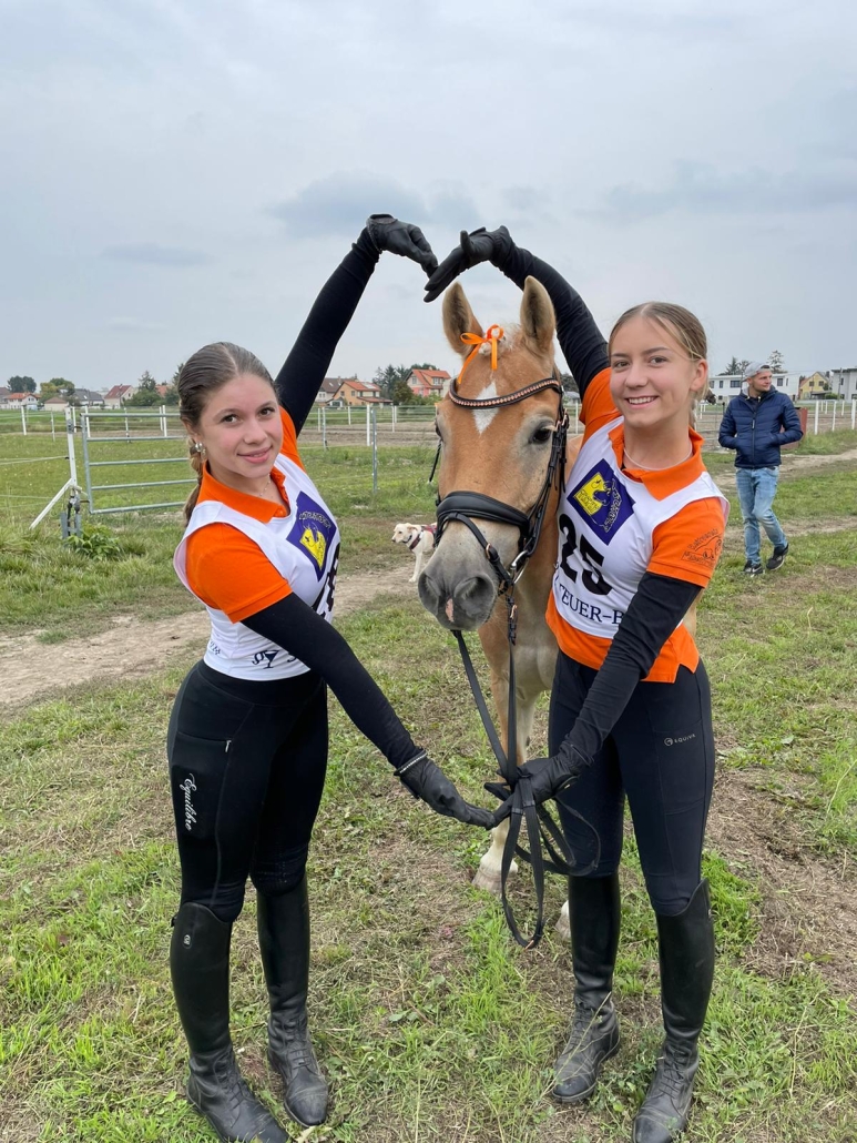 Es gibt beim Finale zwei Wertungen: das springbetonte Finale, wo ein 80cm Parcours gesprungen werden muss (Richterin war Petra Choc) und das dressurbetonte Finale, wo eine selbst zusammengestellte Musikkür geritten wird (Richterin war Sandra Schuster). Alle müssen das Vormustern und die Theorie absolvieren. Die schwierigen Theoriefragen konnte Sarah Fritzl vom Althof als einzige ganz richtig beantworten, das brachte sie auf Platz 3 im springbetonten Finale hinter ihren Mannschaftskolleginnen Yara Lentsch und Marlies Karner. Mit diesen guten Einzelergebnissen ging auch der große Pokal für den Sieg im 4-er Team springbetont ins Burgenland und dazu noch der Pokal für den 2.Platz in der dressurbetonten Wertung sowie Rang 3 in der Youngsterwertung dressurbetont durch Hannah Exner. Das bedeutete insgesamt 6 Pokale für die Reiterinnen vom Althof mit Mannschaftsführerin Beatrice Wetschka.