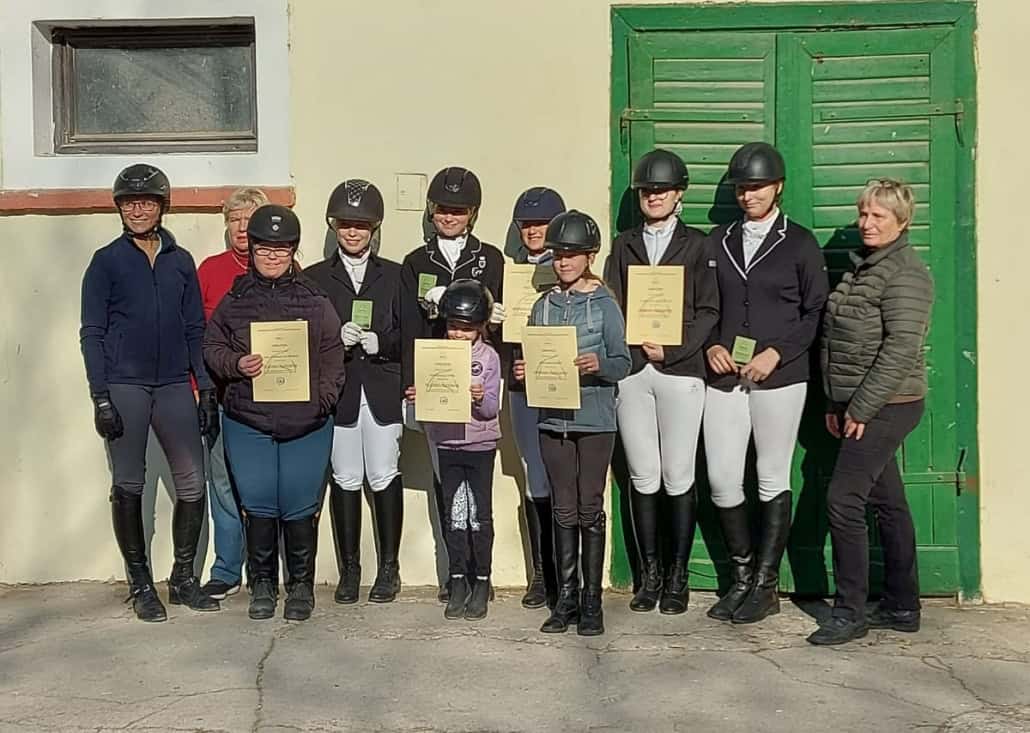 Aus unseren Vereinen | Sonderprüfung RV Breitensee (11.11.2024) – Bei strahlendem Herbstwetter haben acht Prüflinge am 09.11.2024 im Reitverein Breitensee die Reiternadel, Dressurnadel, kleines und großes Hufeisen mit Bravour bestanden! Wir gratulieren recht herzlich!