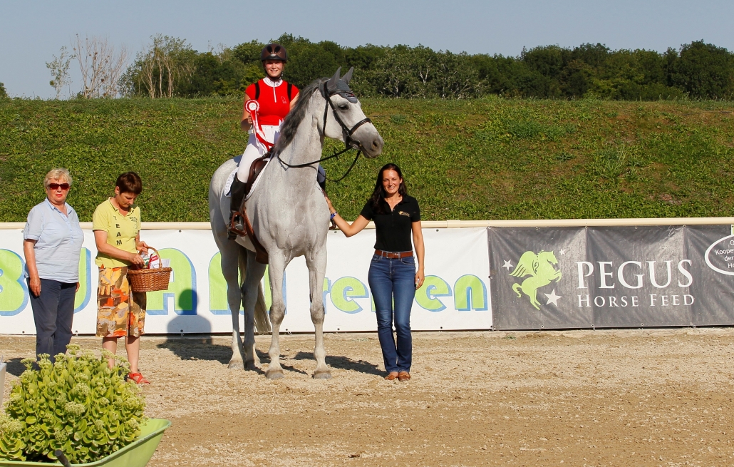 Insgesamt 250 Pferde waren von Ihren Reitern für das Turnier bei Familie Schranz genannt worden und die Starterzahlen in den Cupbewerben des NÖ Pferdesportverbandes NOEPS rekordverdächtig. Im Pegus Risikospringcup hatten sich 57 Paare in die Startliste eingetragen und der Sieg blieb dank Barbara Luegmayer-Latschbacher von Reitverein Oberweiden im Bezirk Gänserndorf. Die 21-jährige Niederösterreicherin konnte mit Ihrer 10-jährigen Österreichischen Warmblutstute Lizardo’s Jessica K nicht nur den 1,15 m hohen Grundparcours, sondern auch den Risikosprung fehlerfrei überwinden und so in 51,57 Sekunden mit dem Punktemaximum von 15 souverän den Sieg holen.