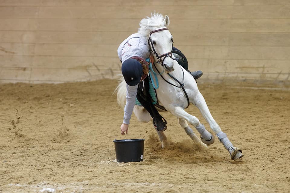 Anders sah die Sache bei den Mounted Games „Zwergen“ Klasse U12 aus, die ebenfalls für spannende Matches sorgten: Die NÖ Paarung Pia Baurecht und Sophie Benedict (beide PSZ Breitenfurt) starteten in der 1. Runde sehr schwach und mussten sogar Null-Runden hinnehmen. Das heißt, dass so schwere Fehler passierten, das sie nichtmal den obligatorischen Punkt für das langsamste Paar vom Richter zugesprochen bekamen. Umso spannender war es, als die beiden in Runde 2 ihre Form fanden und im Finale dann über sich hinaus wuchsen und mit einigen präzise gerittenen Rennen und 11 Punkten Vorsprung vor der Konkurrenz aus OÖ den Gesamtsieg holten. Miriam Ecker und Kiana Kaffenda (URFV Allhartsberg/NÖ) wurden Dritte.