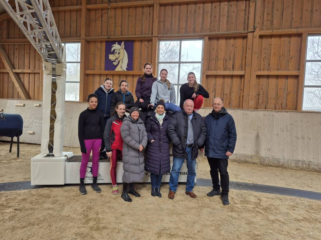 Präsident Ing. Franz Kager und Vizepräsidentin Ursula Mayer-Rabl trafen am 31. März auf dem Mühlbachhof Voltigierreferent Mag. Christan Kermer und konnten sich persönlich ein Bild vom Training machen.