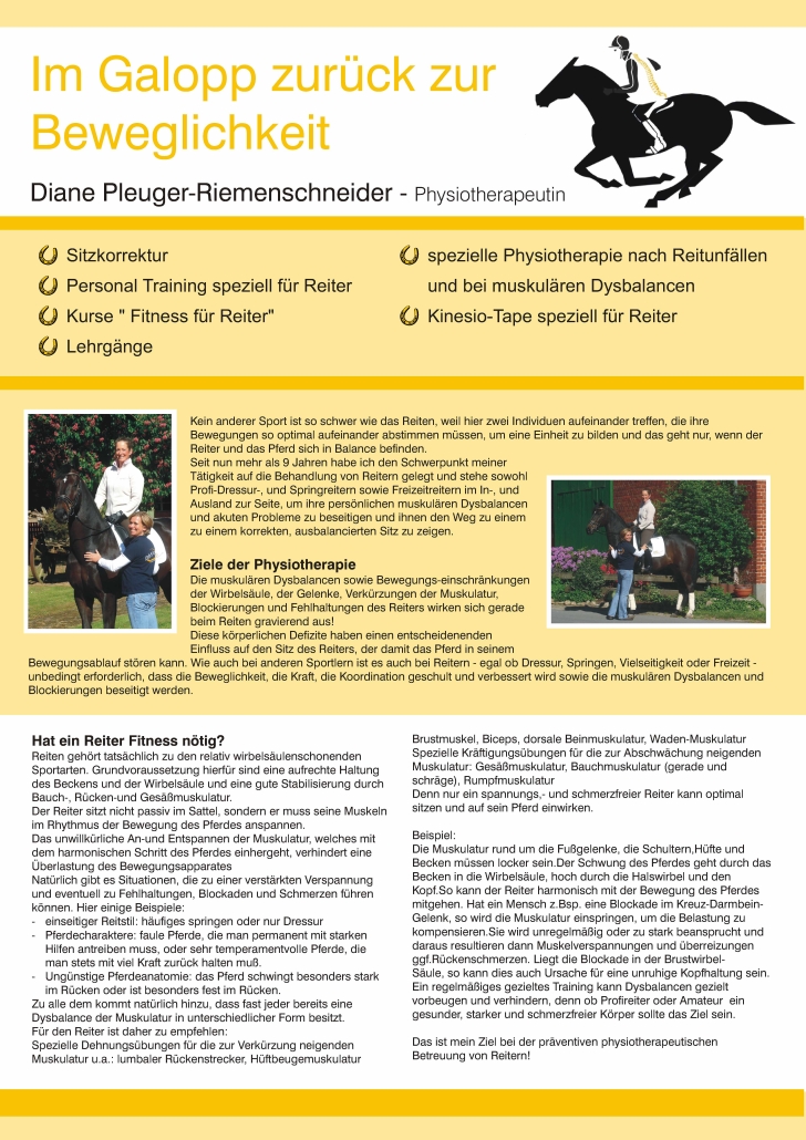 Pferdesport in NÖ | Ausbildung (10.03.2022) – Für alle Ausbilder (Reitlehrer, Trainer, Instruktoren und Übungsleiter) veranstaltet das NOEPS Referat Ausbildung am Montag, den 11.4. 2022 eine interessante, ganztägige Fortbildung der Kategorie A auf dem Gutenhof in Himberg zum Thema „Fitness für ReiterInnen unter physiotherapeutischen Aspekten“ mit Physiotherapeutin Diane Pleuger-Riemenschneider. Neben theoretischen Grundlagen wird es auch einen umfangreichen praktischen Teil geben, der gezielt auf Sitzkorrektur unter physiotherapeutischen Aspekten eingeht.