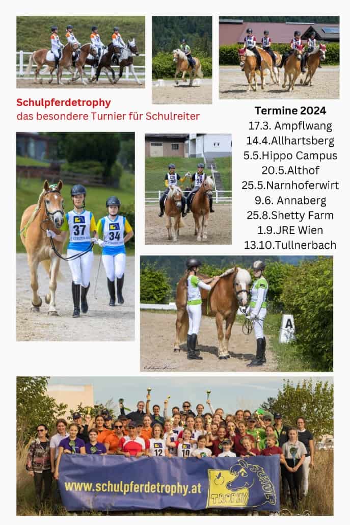 Pferdesport in NÖ | Schulpferdetrophy (28.02.2024) – Die Schulpferdetrophy 2024 wird in insgesamt acht Runden und einem Finale ausgetragen. Fünf Bundesländer (Oberösterreich, Niederösterreich, Burgendland, Steiermark und Wien) fungieren als Gastgeber, in Niederösterreich werden vier Vorrunden und das Finale stattfinden.