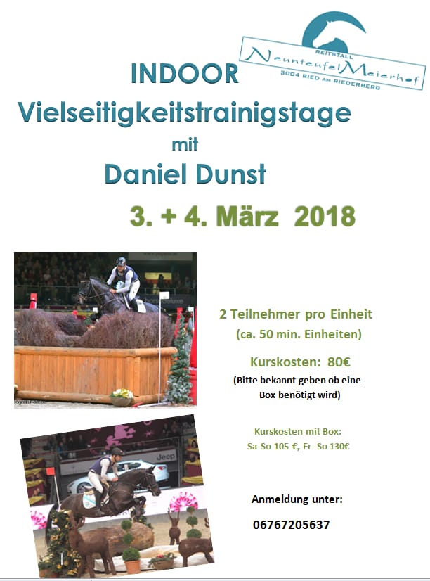 Kurse & Veranstaltungen Indoor Vielseitigkeitstrainingstage Lade Karte ... Riedlgasse 2A - Ried am RiederbergVeranstaltungen 48.2563793 16.07092579999994 Datum 03.03.2018–04.03.2018Ganztägig Veranstaltungsort Reitstall Neunteufel Meierhof Riedlgasse 2A 3004 Ried am Riederberg Österreich