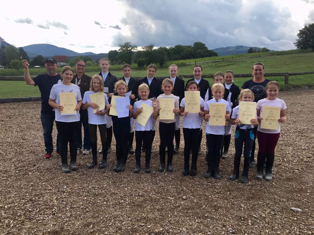 Aus unseren Vereinen | Sonderprüfungen (05.09.2023) – Am 3. September konnte sowohl am Reiterhof Letz Fetz in Trumau als auch im RFV Berndorf in Veitsau die weiße Fahne gehisst werden. Alle Kandidatinnen konnten ihre Prüfungen vom Hufeisen bis zur Reiternadel souverän bestehen! Wir gratulieren sehr herzlich!