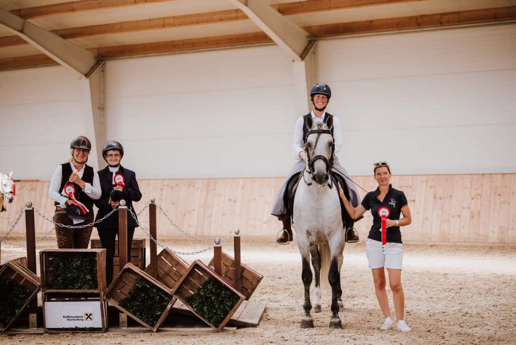 Turnierleiterin Marion Stradal-Dallarosa sorgte für einen reibungslosen Ablauf im Hintergrund, Hausherrin Melanie Reidinger war nicht nur um alle Anliegen bemüht, sondern startete auch erstmals in dieser Pferdesportdisziplin, die immer mehr an Beliebtheit gewinnt. Sie erritt sich gleich beim 1. Versuch die Lizenz WE1.